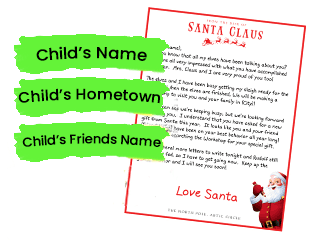 Quickly create your child’s Santa letter. It only takes a minute. Each child receives a special letter made just for them.